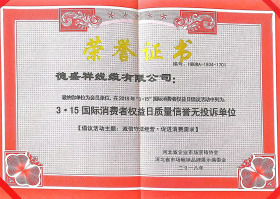 首页 >> 資質(zhì)榮譽 >>默認(rèn)分類 >> 315-國際消費者權(quán)益日質(zhì)量信譽無投訴單位